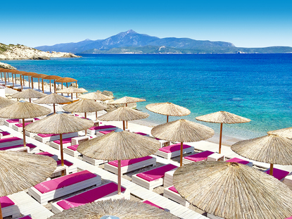 Het eiland Samos bevindt zich in het oosten van de Egeïsche Zee en u geniet er van de perfecte omstandigheden voor een ontspannen verblijf in Griekenland. Tijdens uw vakantie op Samos ontdekt u al wandelend heel wat pittoreske bergdorpen in de verschillende opeenvolgende bergketens. De berg Kerkis is de hoogste spits van het Egeïsch gebied en torent hoog uit over het zuidwesten van het eiland. De top is 1434 meter hoog en in de onmiddellijke omgeving ervan bevindt zich het nonnenklooster Evangelistria. Te midden van het Kerkis-massief bevindt zich ook de grot van Pythagoras, waarin de wiskundige en filosoof zich zou hebben verscholen. Wie houdt van het maken van wandelingen moet tijdens een vakantie op Samos zeker gebruikmaken van de uitgebreide ontdekkingsroutes die in het hele Kerkis-massief doorheen bijzonder romantische landschappen leiden. Een vakantie op Samos is pas compleet na een bezoek aan de watervallen in de buurt van Karlovassi. Wie houdt van zonnen komt tijdens een vakantie op Samos helemaal aan z'n trekken op het zandstrand van Psili Ammos, in de buurt van de baai van Mykali. Tijdens een pakketreis naar Samos geniet u van onbeperkte waterpret aan het heerlijke zandstrand van Votsalakia. Ook op de keien- en kiezelstranden zoals die van Leonakia of Tsabou kunt u genieten van een ontspannen tijd tijdens uw vakantie op Samos.